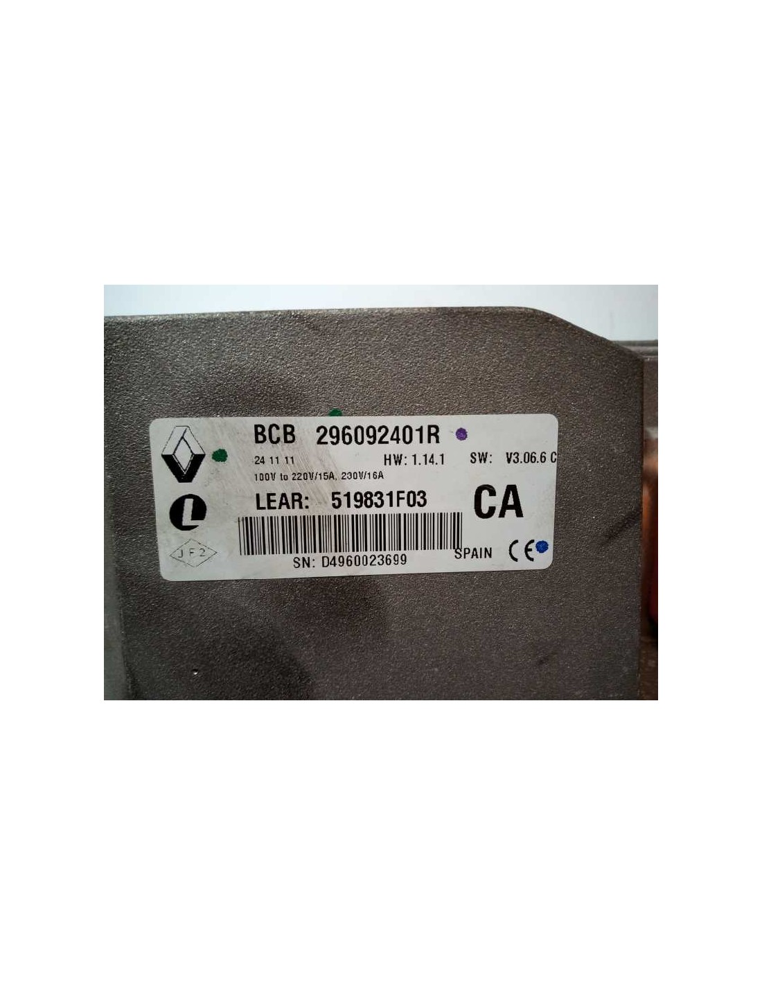 Recambio de bateria para renault fluence z.e. dynamique referencia OEM IAM 296092401R UNIDAD DE CARGA ELECTRICA 27.758KM