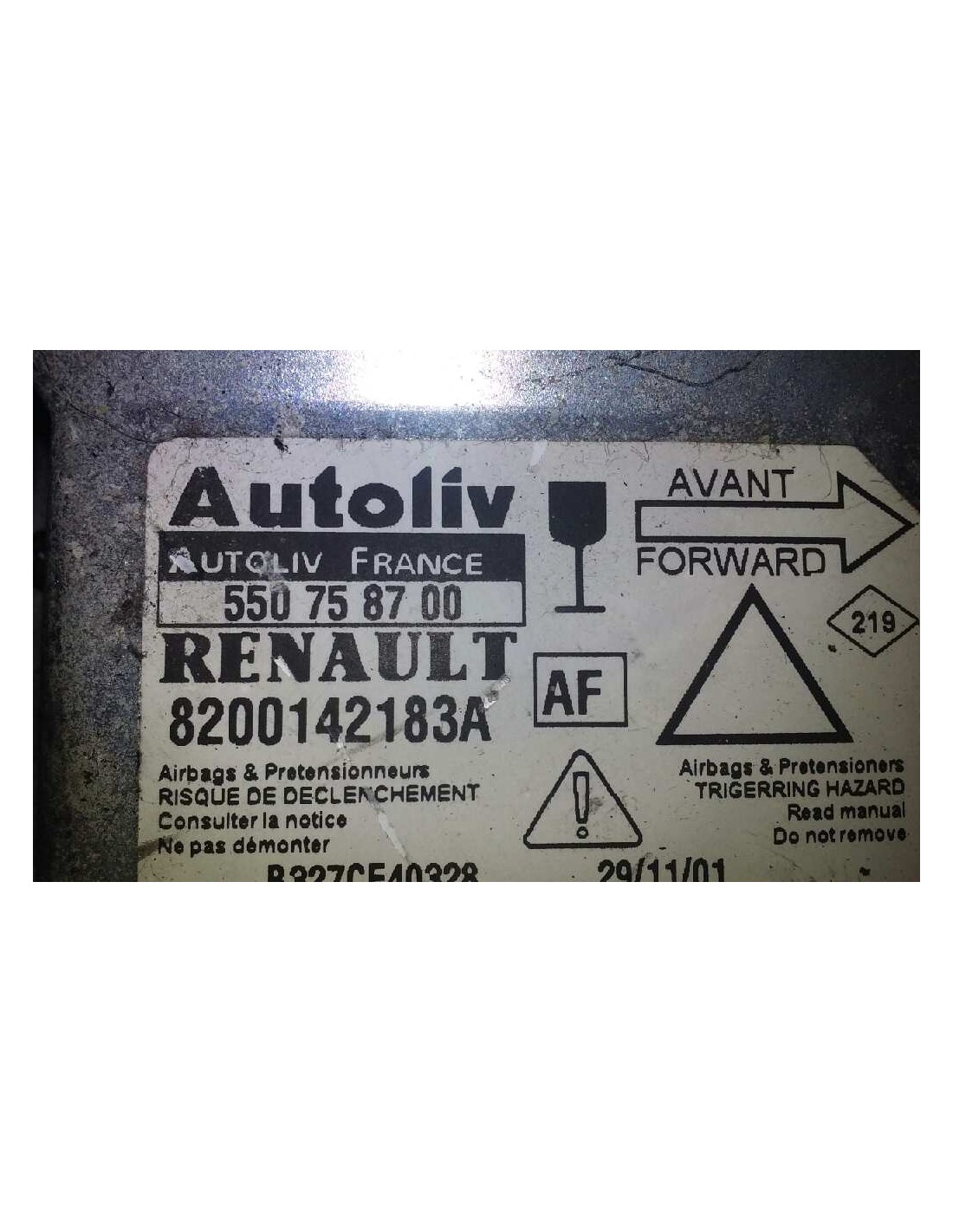 8200142183A. Recambio de centralita airbag para renault laguna ii (bg0) authentique referencia OEM IAM 8200142183A 8200142183A