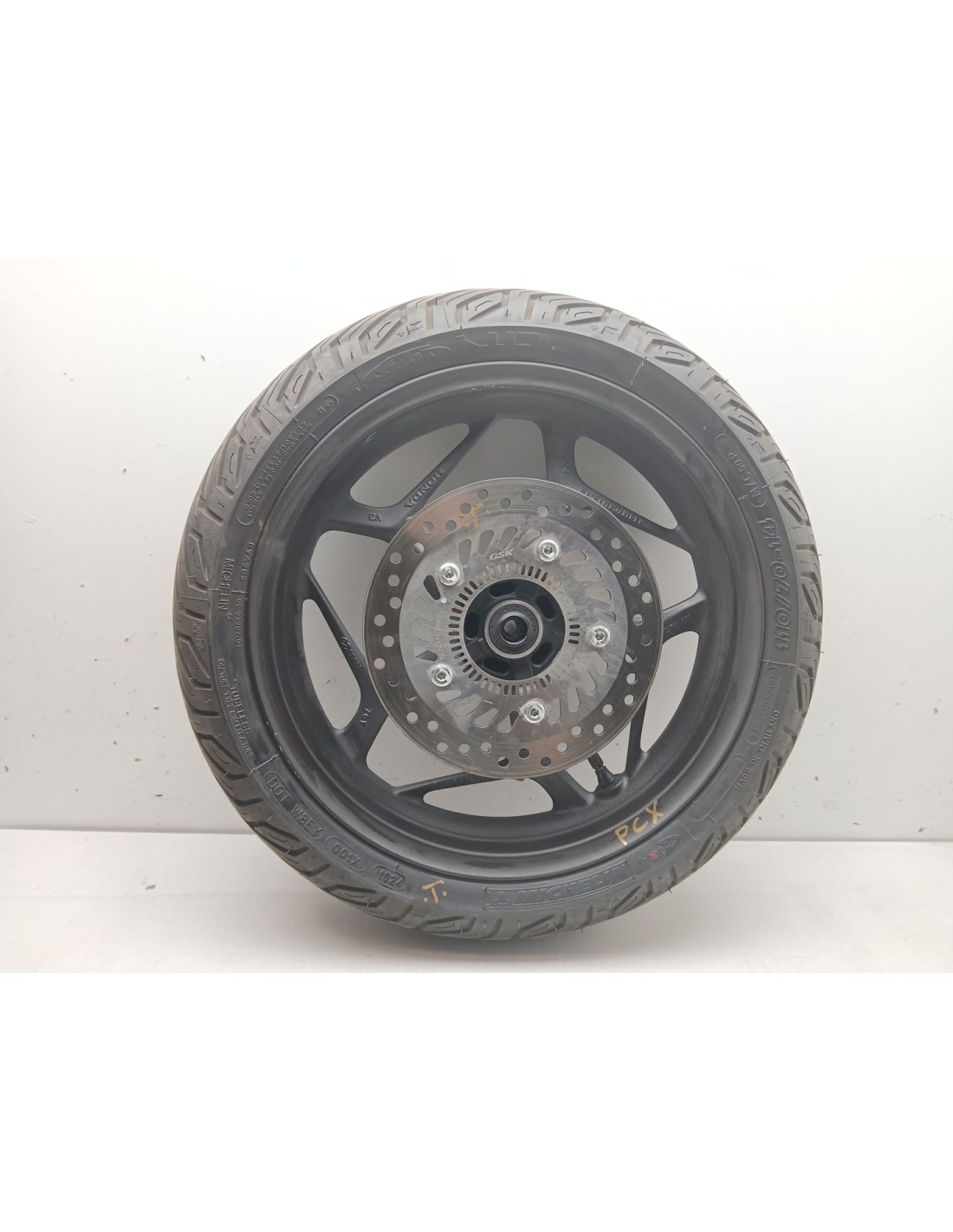 INCLUYE NEUMÁTICO Y DISCO DE FRENOdelanteraMichelin 2024. Recambio de llanta para honda pcx pcx 125 (jk05) referencia OEM IAM 110-70-14