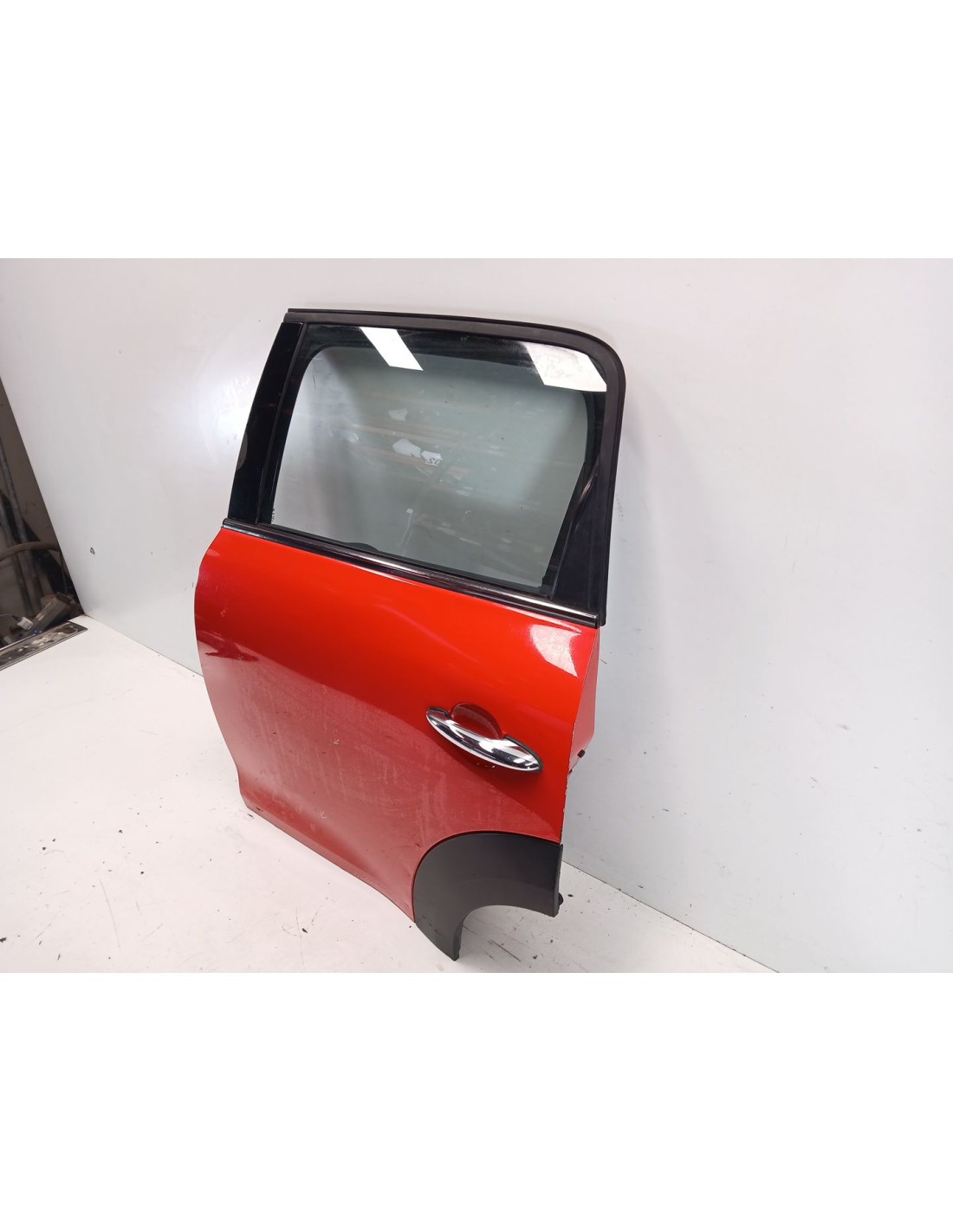 RIESGO DE ROTURA DE CRISTAL EN ENVIOS. SE VENDE SIN ACCESORIOS. COLOR ROJO CLARO CON ROCES VER FOTOS. Recambio de puerta trasera izquierda para mini mini countryman (r60) one referencia OEM IAM 41009805929