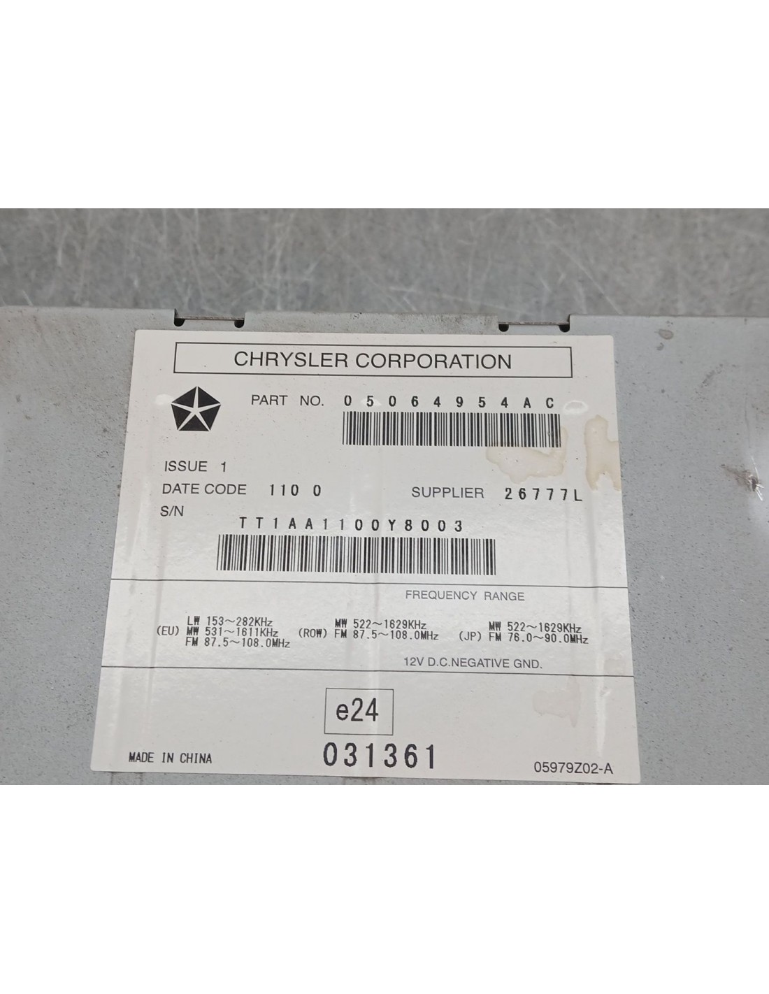 CODIGO NO INCLUÍDO - CODE NOT INCLUDED. Recambio de sistema audio / radio cd para jeep cherokee limited referencia OEM IAM 05064954AC
