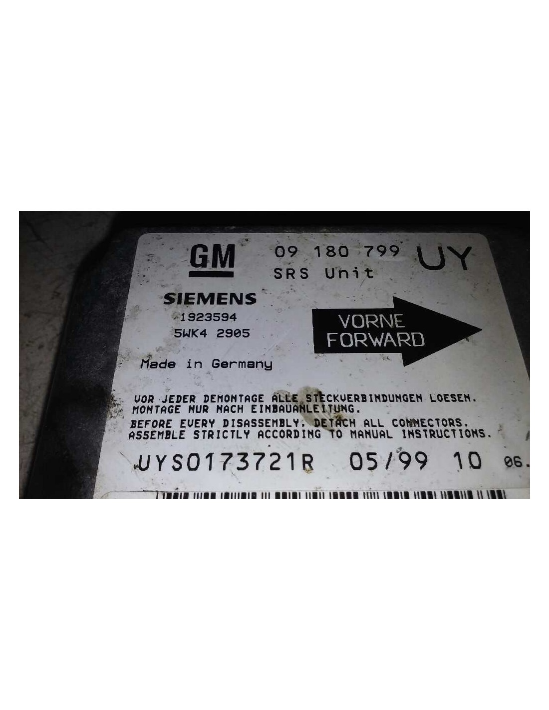 Piezas recuperadas del vehículo relacionado