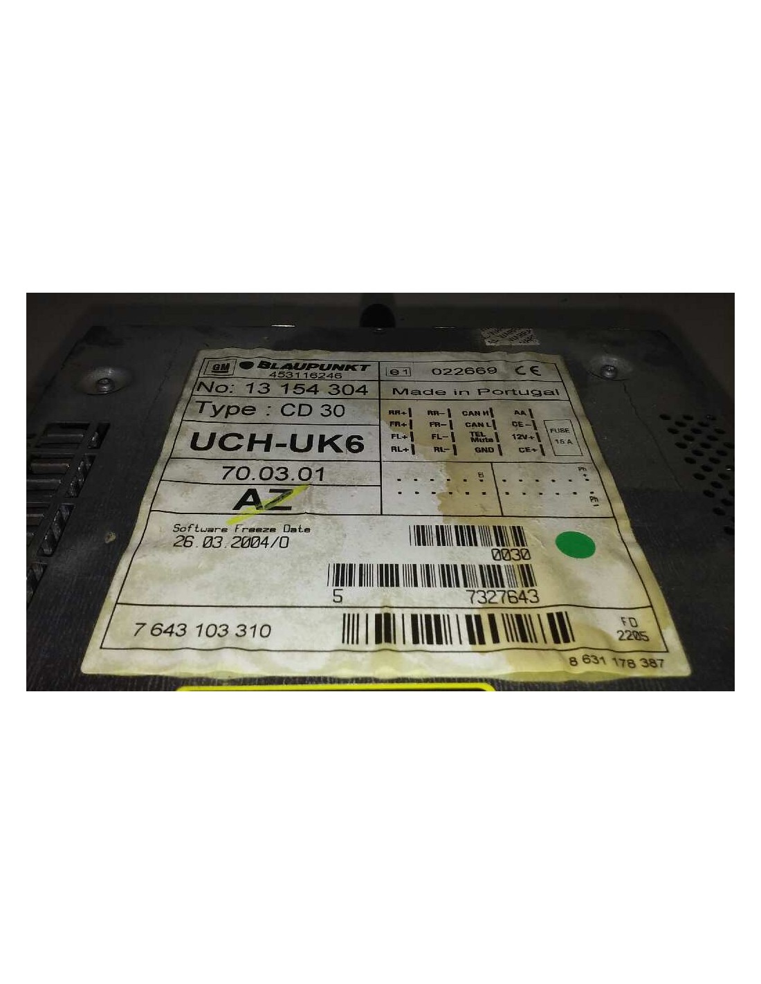 CODIGO NO INCLUÍDO - CODE NOT INCLUDED 13154304AZ. Recambio de sistema audio / radio cd para opel astra h berlina cosmo referencia OEM IAM 13154304AZ