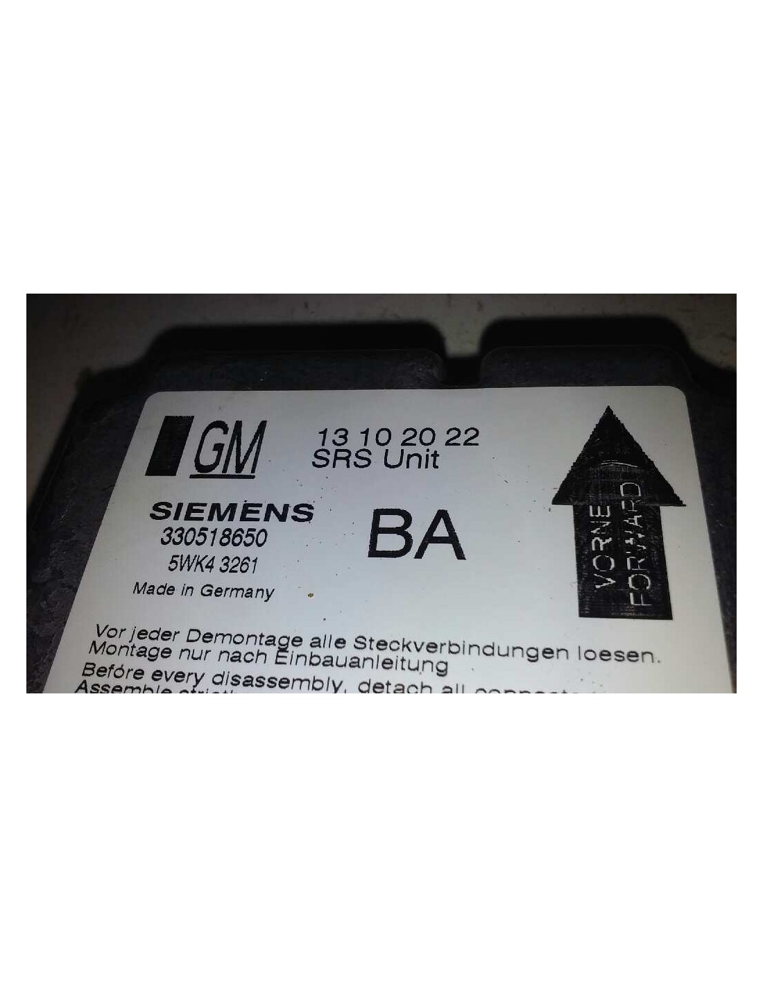13102022 330518650 5WK43261. Recambio de centralita airbag para opel vectra c berlina comfort referencia OEM IAM 13102022 330518650 5WK43261 13102022