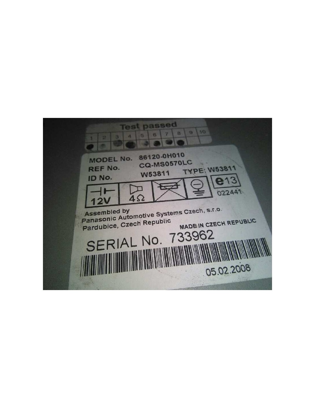 CODIGO NO INCLUÍDO - CODE NOT INCLUDED 861200H010 86120-0H010. Recambio de sistema audio / radio cd para toyota aygo (kgb/wnb) básico referencia OEM IAM 861200H010