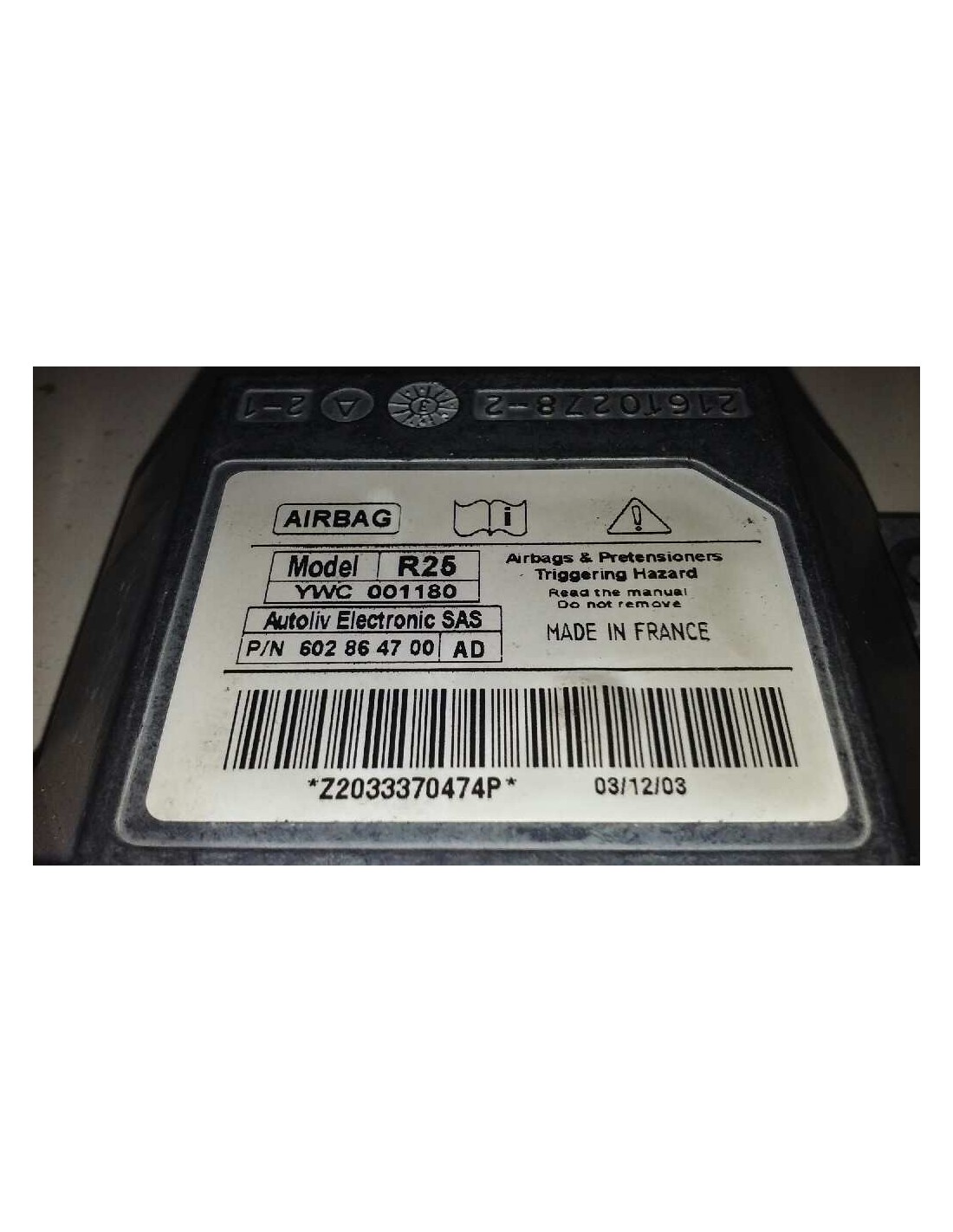 YWC001180 R25. Recambio de centralita airbag para mg mg zr (f/rf) 105 referencia OEM IAM YWC001180
