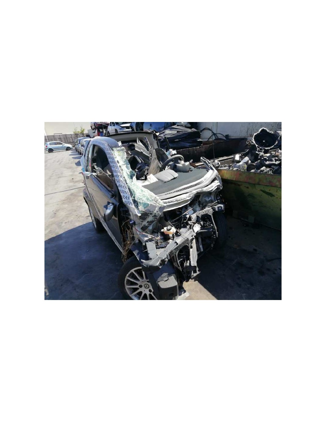 Tenemos piezas de desguace como palanca de cambios, guarnecidos, aletín trasero, puertas delanteras, paragolpes, airbags, cuadro de instrumentos, elevalunas, caja de cambios, motor completo de Smart, paragolpes, faros, turbocompresor, transmisión o cerraduras.